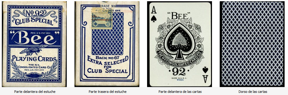 La primera es una Bee, abierta. El estuche está en un estado aceptable, las cartas en muy buen estado. Según el As de picas y el timbre la baraja data de 1956.