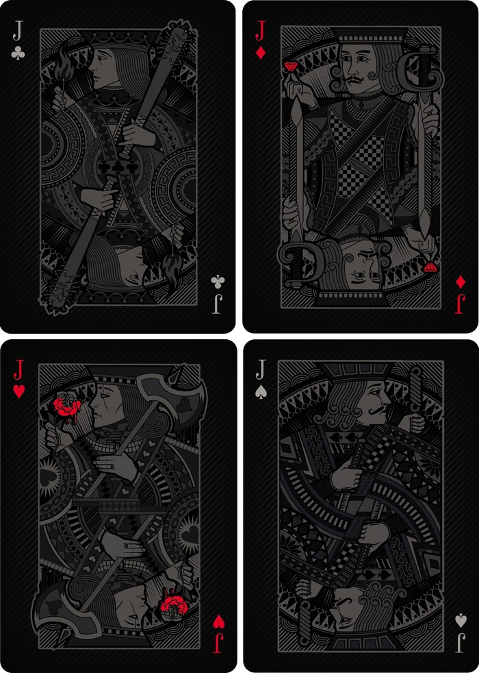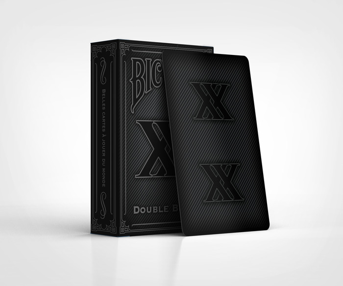 Bicycle® 'Double Black'. Baraja en escala de grises y rojo, con un dorso sencillo y caras personalizadas. Versiones con marca Bicycle y sin ella