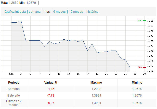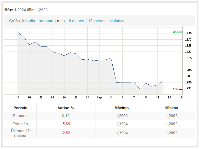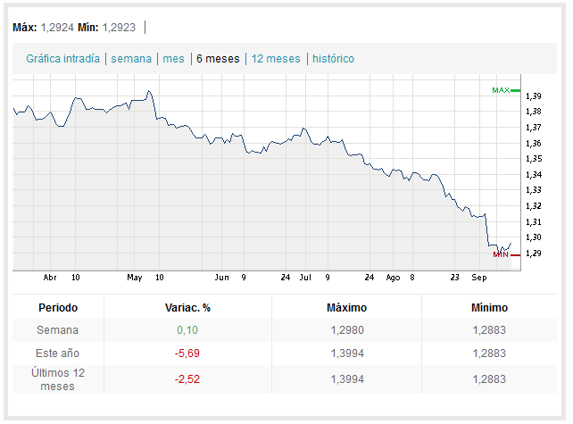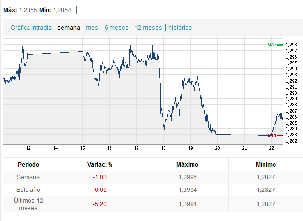 Voy a poner de vez en cuando la cotización euro-dolar, que por cierto está por los suelos