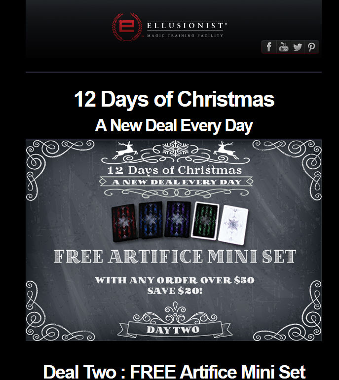Ellusionist está lanzando una serie de promociones navideñas. 1 por día durante 12 días.