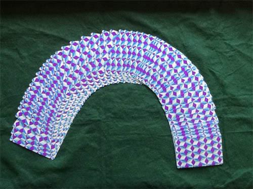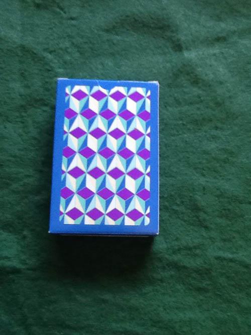 En cuanto a las cartas tienen un dorso bastante curioso para manipulación, pero bastante mal encuadrado y el corte no es que sea una maravilla, la cartas tienen doble indice y el diseño es el típico de una baraja común. Las cartas deslizan bien, son bastante duras, resisten decentemente toda clase de manipulaciones, por cierto es tamaño bridge.