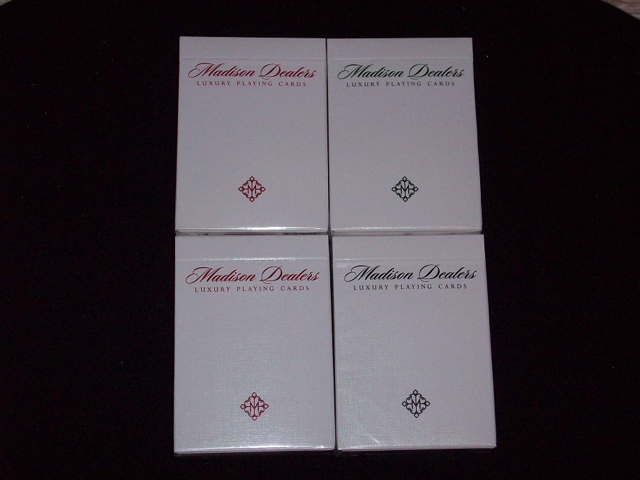 También he recibido la Red Dealers (con bordes) y la White Rounders. También os pongo foto junto a sus "hermanas". Me ha dado por ir cerrando series, qué le vamos a hacer!!!. Lo mismo un día de estos me retiro de coleccionar barajas