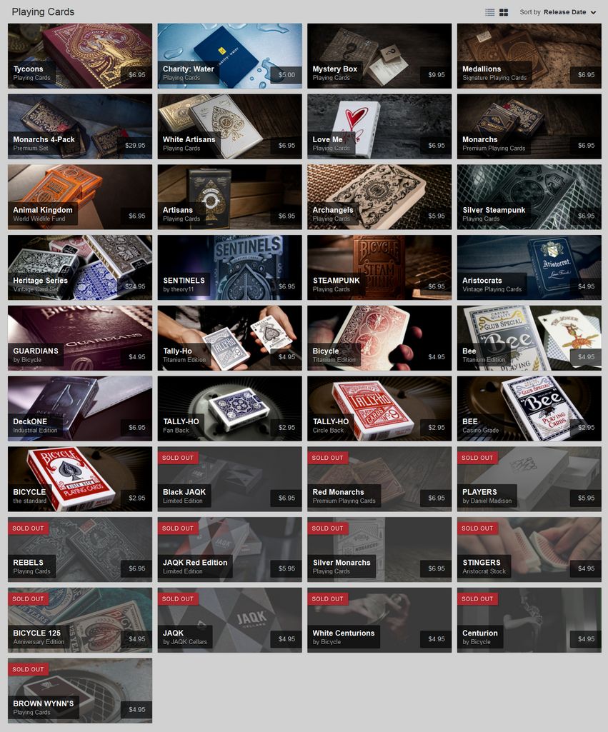 La idea es poner la lista de barajas USPC que han sacado las principales empresas que se dedican al diseño y venta de barajas personalizadas.