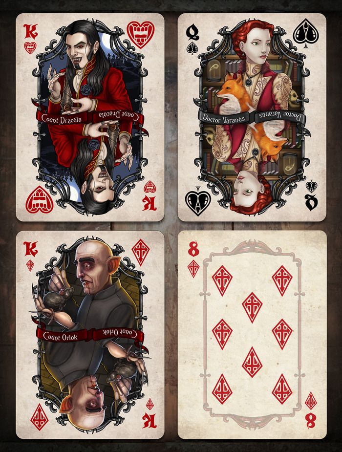 Nat Iwata creador de otras barajas como Neverland y varios Steampunk nos trae una nueva baraja, con vampiros.
